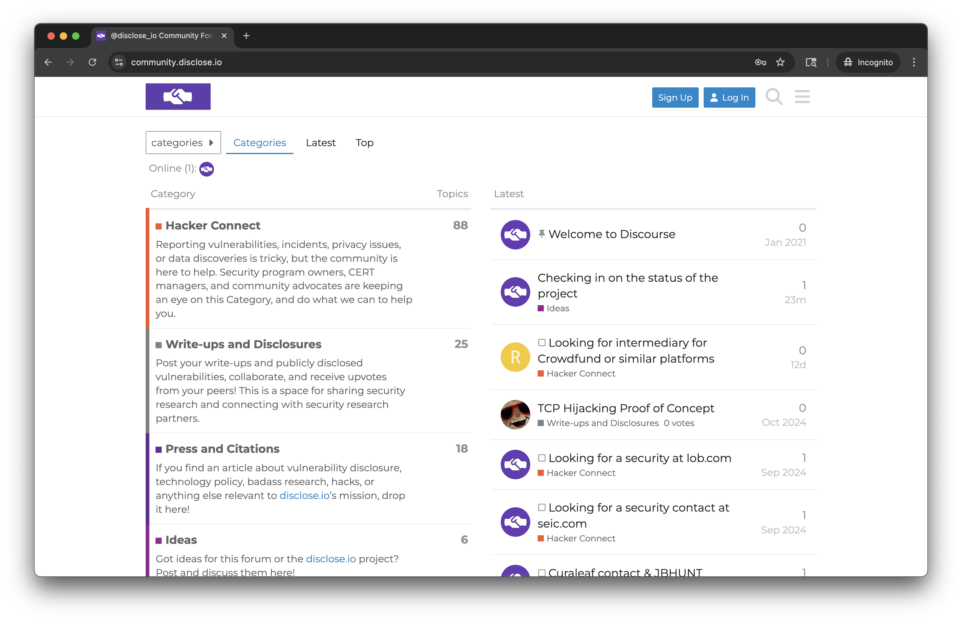 - Ideas: Have suggestions for improving the forum or the disclose.io project? Share them here.